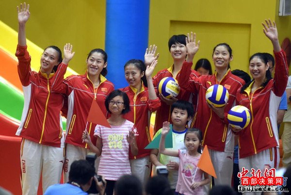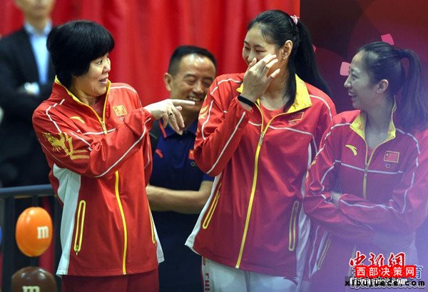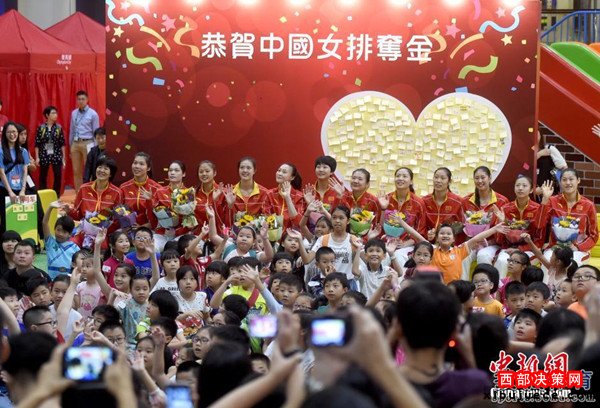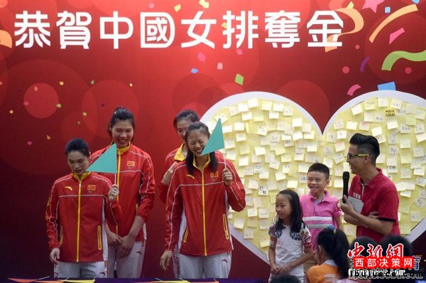 北京時間8月28日,女排隊員在香港與市民見面。見面會上女排姑娘與當(dāng)?shù)貎和M行了互動游戲,女排主教練郎平幽默扮鬼臉令人捧腹大笑。