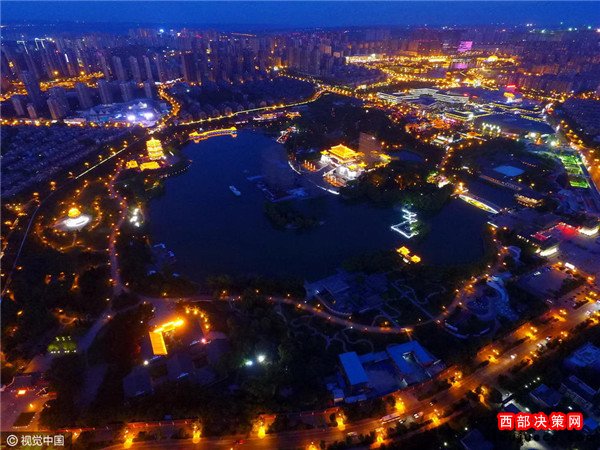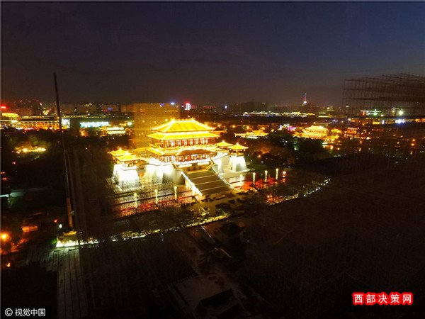 2016年08月30日,陜西省西安市,中央電視臺(tái)中秋晚會(huì)西安大唐芙蓉園分會(huì)場(chǎng)正在緊張布置中。記者從利用無(wú)人機(jī),分別航拍到大唐芙蓉園白天與夜晚的壯美風(fēng)景,如同一幅美麗畫(huà)卷,等待著中秋佳節(jié)的到來(lái)。