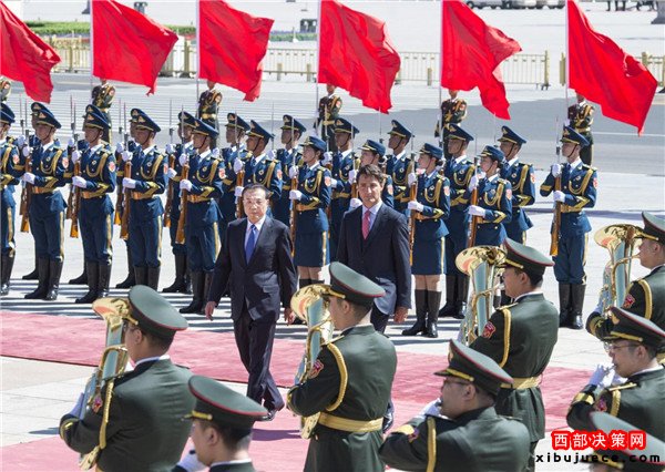 8月31日,國(guó)務(wù)院總理李克強(qiáng)在人民大會(huì)堂東門(mén)外廣場(chǎng)為特魯多舉行歡迎儀式。