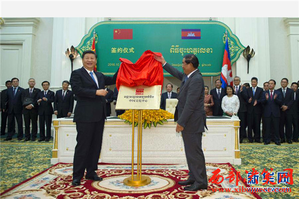 10月13日,國家主席習(xí)近平在金邊同柬埔寨首相洪森舉行會(huì)談。會(huì)談后,兩國領(lǐng)導(dǎo)人共同出席金邊中國文化中心揭牌儀式。