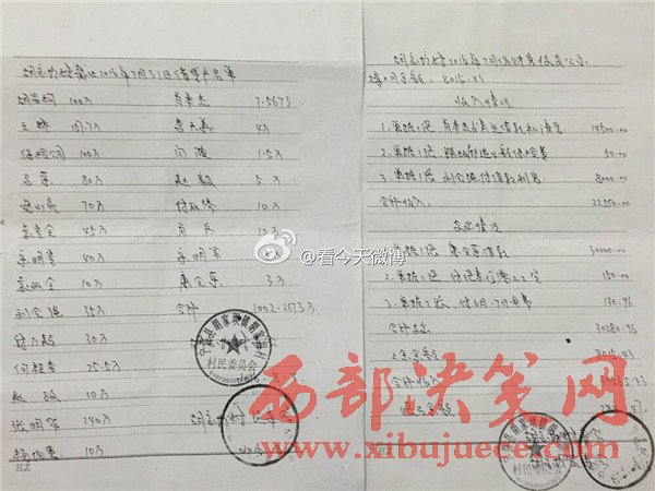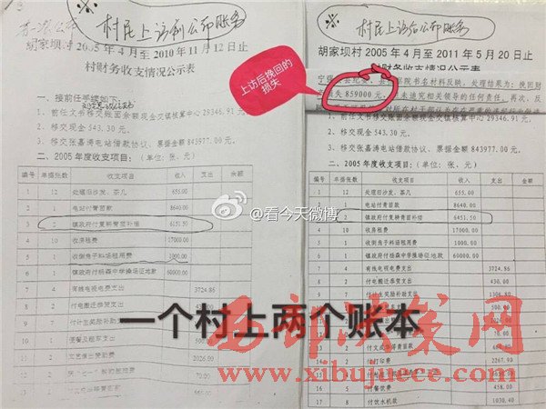 據(jù)實(shí)名舉報(bào)材料了解,早在2011年5月16日,經(jīng)群眾上訪,寧強(qiáng)縣縣紀(jì)委、縣檢察院就對(duì)黨支部書記劉全忠作出過處理,挽回財(cái)產(chǎn)損失859000元,但并未追究其法律責(zé)任。從胡家壩村公布的賬目來看,村民上訪前和上訪后僅“鎮(zhèn)政府付復(fù)耕青苗補(bǔ)償”單這一款項(xiàng)就有300元的出入。一個(gè)村子竟然存在兩本財(cái)政收支賬目,到底哪本賬才是胡家壩村真正的財(cái)政收支賬目呢?為什么要做兩本性質(zhì)相同的賬?會(huì)不會(huì)該村還有第三本賬?