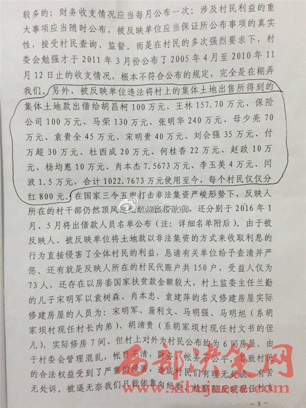西部決策網(wǎng)訊 近日,有網(wǎng)友微博爆料,陜西省漢中市寧強(qiáng)縣胡家壩鎮(zhèn)胡家壩村,村干部劉全忠利用惠民政策,套取國(guó)家大量資金。對(duì)于國(guó)家扶貧項(xiàng)目,巧立名目、貪污、侵占村民利益。濫用職權(quán)違規(guī)審批宅基地,倒賣村集體土地,并將村上千萬余元出借他人賺取利息,且村務(wù)不公開、賬務(wù)弄虛作假、嚴(yán)重違紀(jì)行為。