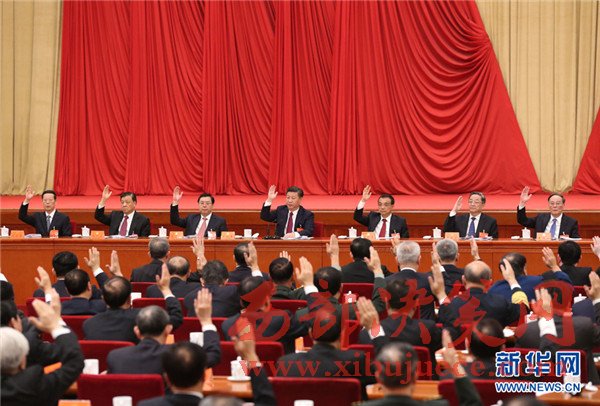 中國(guó)共產(chǎn)黨第十八屆中央委員會(huì)第六次全體會(huì)議,于2016年10月24日至27日在北京舉行。這是習(xí)近平、李克強(qiáng)、張德江、俞正聲、劉云山、王岐山、張高麗等在主席臺(tái)上。新華社記者 李學(xué)仁 攝