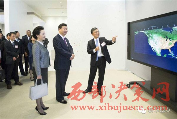 2015年9月23日,習近平參觀美國微軟公司總部。這是習近平夫婦觀摩大數據可視化系統(tǒng)展示。新華社記者蘭紅光攝