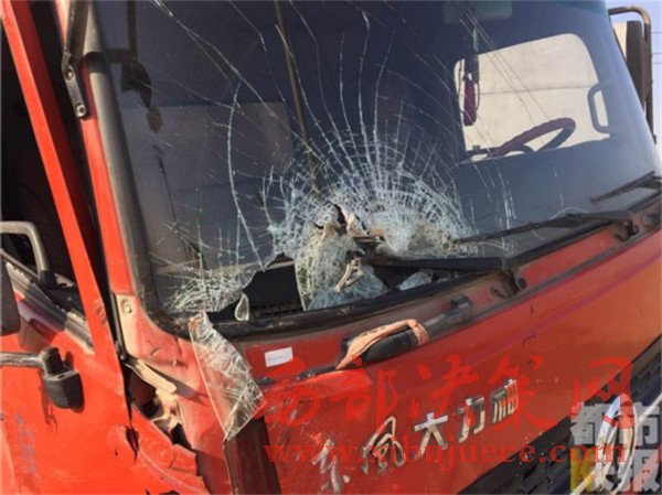 貨車司機(jī)王某:“我當(dāng)時(shí)正常行駛,然后就看見它(拉沙車)從那邊先撞了一輛小轎車,然后撞過來,把我嚇的。”