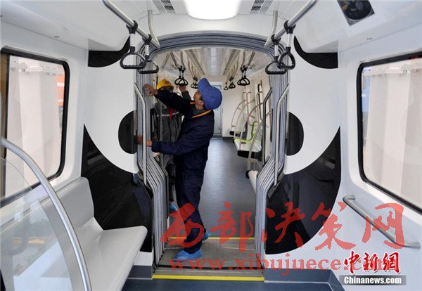 此外,列車(chē)整體結(jié)構(gòu)也采用輕量化設(shè)計(jì),全線(xiàn)無(wú)人駕駛,能像地鐵、動(dòng)車(chē)組一樣靈活編組。列車(chē)在懸掛裝置設(shè)有兩級(jí)保護(hù),還在駕駛室內(nèi)設(shè)有緊急逃生筒和故障救援門(mén),可實(shí)現(xiàn)縱向、橫向及垂向的三維救援,確保了突發(fā)情況下乘客的安全。圖為車(chē)廂內(nèi)也繪有“熊貓”圖案。