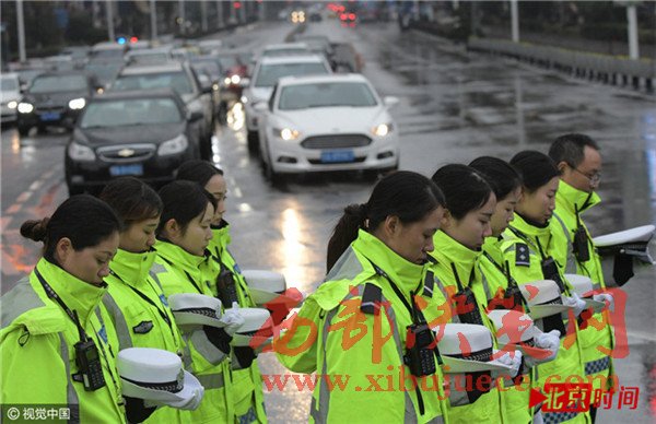 在南京市中心新街口,十點(diǎn)整,隨著凌厲尖銳的防空警報(bào)在南京上空拉響,往日熙攘熱鬧的新街口變得靜止。車輛緩緩?fù)W?,主動鳴笛致哀1分鐘。行色匆匆的路人也停下腳步在寒風(fēng)中低頭默哀。此刻,所有人共同緬懷在南京大屠殺中死難的同胞。