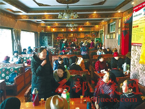 圖為林芝市巴宜區(qū)八一鎮(zhèn)德吉路“童嘎茶館”內(nèi),藏族阿佳們正在小聚,悠閑地品嘗甜茶。