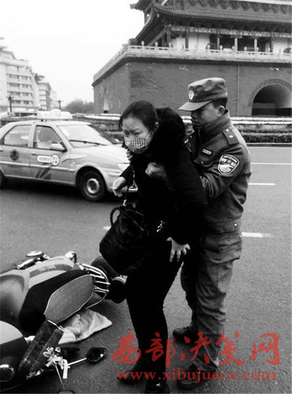 昨天下午,碑林區(qū)城市管理綜合行政執(zhí)法柏樹林中隊(duì)兩名執(zhí)法隊(duì)員在鐘樓開元商城區(qū)域正常開展巡查時(shí),一女子騎著電動(dòng)車被一輛轎車撞倒,執(zhí)法人員迅速?zèng)_上前將其扶到路邊,并報(bào)警。