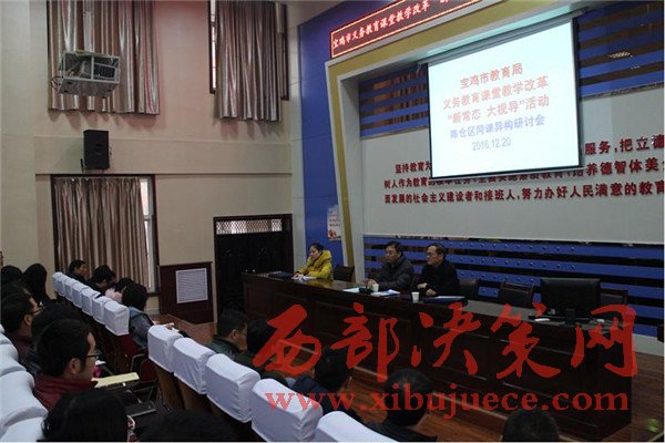 西部決策網(wǎng)訊(任書彥 郭宏娟) 12月19日至20日,寶雞市教育局在陳倉(cāng)區(qū)開(kāi)展了義務(wù)教育課堂教學(xué)改革“新常態(tài)·大視導(dǎo)”活動(dòng)。本次視導(dǎo)由寶雞市教育局副局長(zhǎng)吳燕玲任組長(zhǎng),從行政和專業(yè)兩個(gè)層面,深入寶雞市陳倉(cāng)區(qū)教體局及千渭初中、慕儀初中、實(shí)驗(yàn)小學(xué)、西堡小學(xué)、渭陽(yáng)小學(xué)等5所課改學(xué)校,通過(guò)聽(tīng)取匯報(bào)、實(shí)地走訪、查閱資料、問(wèn)卷調(diào)查、召開(kāi)師生及家長(zhǎng)座談會(huì)、課堂觀摩、示范教學(xué)、講座論壇、現(xiàn)場(chǎng)反饋等多種形式,對(duì)寶雞市陳倉(cāng)區(qū)義務(wù)教育課堂教學(xué)改革情況進(jìn)行了全方位、深層次的調(diào)研指導(dǎo)。