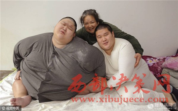 老二的生活基本能夠自理,老大張航郡卻很愁人。當(dāng)日9時(shí),老大剛剛早起。兩米寬的床,他占據(jù)了—大半。張航郡的體重至少有500斤,沒有—個(gè)秤能準(zhǔn)確地量出他的體重。腰圍九尺多,不敢說是全國最胖的,但在沈陽絕對是第—胖。500多斤,生活中是什么樣的狀態(tài)?記者看到,張航郡家里的東西大部分是特制的。九尺多的腰,哪有賣這個(gè)型號(hào)衣服的啊?普通的衣服根本不能穿,必須特制。洗臉、上廁所這些生活基本問題都得馬女士幫助才能完成。“別看他22歲了,智力水平—直停留在1歲左右。叫‘媽媽’都是這幾年才學(xué)會(huì)的。”張航郡與馬女士的交流會(huì)用喊的方式,喊些只有馬女士才能聽得懂的語言。