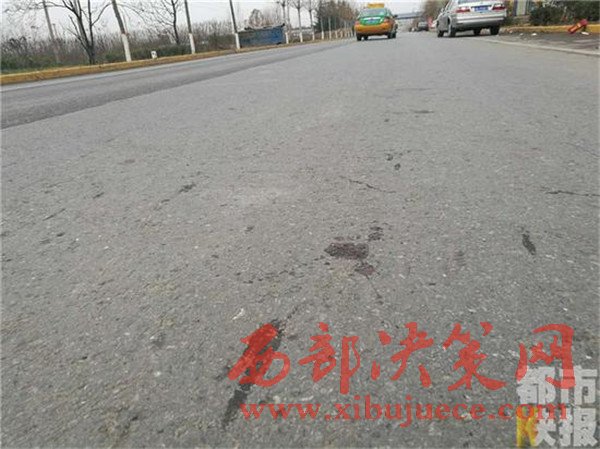 隨后,記者趕到現(xiàn)場(chǎng)。雖然現(xiàn)場(chǎng)已被處理,但是在路面上還是可以看到事故留下的斑斑血跡。