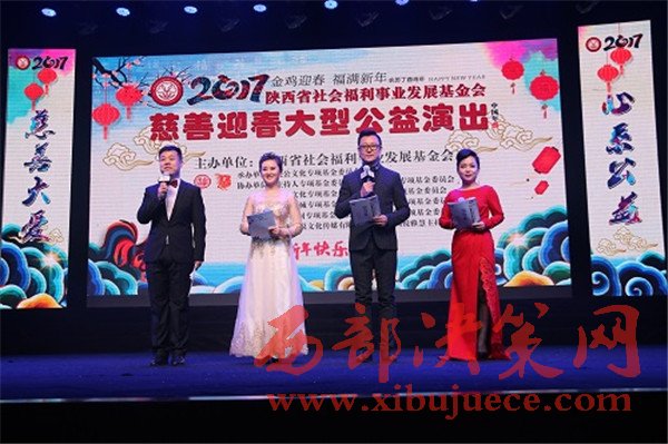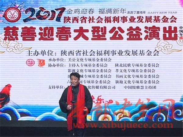 1月18日晚,由陜西省社會福利事業(yè)發(fā)展基金會主辦、關(guān)公文化專項基金委員會承辦、主持人專項基金委員會、陜北民歌專項基金委員會等協(xié)辦、陜西省民政廳指導的《慈善迎春》大型公益演出在蓮湖區(qū)絲路藝術(shù)劇院成功舉辦。
