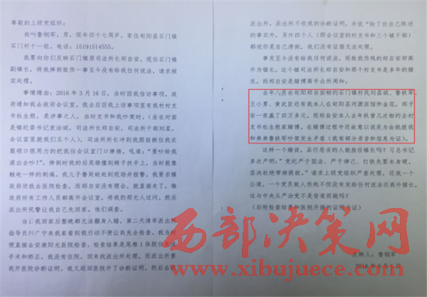 2016年12月14日,魯鋼軍來到旬陽縣紀委,向現(xiàn)任旬陽縣紀委書記付波反映該事件,付書記給予書面登記,并口頭承諾盡快解決。
