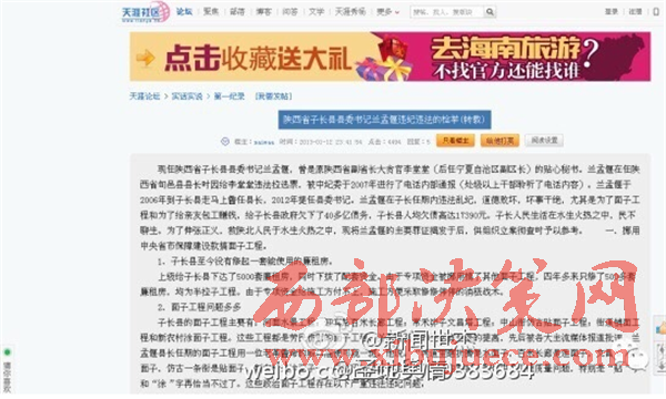 據(jù)微博網友爆料:現(xiàn)任陜西省子長縣縣委書記蘭孟偃,曾是原陜西省副省長大貪官李堂堂(后任寧夏自治區(qū)副區(qū)長)的貼心秘書。蘭孟偃在任陜西省旬邑縣縣長時因給李堂堂違法拉選票,被中紀委于2007年進行了電話內部通報(處級以上干部聆聽了電話內容)。蘭孟偃于2006年到子長縣走馬上齤任縣長,2012年提任縣委書記。蘭孟偃在子長任期內違法亂紀,道德敗壞,壞事干絕,尤其是為了面子工程和為了給親友包工賺錢,給子長縣政府欠下了40多億債務,子長縣人均欠債高達17390元。子長人民生活在水生火熱之中,民不聊生。為了伸張正義,救陜北人民于水生火熱之中,現(xiàn)將蘭孟偃的主要罪證揭發(fā)于后,供組織立案徹查時予以參考?! ∫?、挪用中央省市保障建設款搞面子工程。