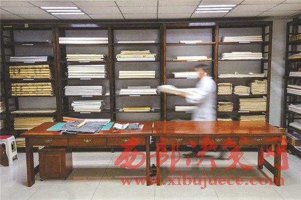 工作室存儲(chǔ)了各類紙張,修復(fù)使用的補(bǔ)紙要與古籍書(shū)頁(yè)的紙質(zhì)、厚薄、顏色相同或相近。