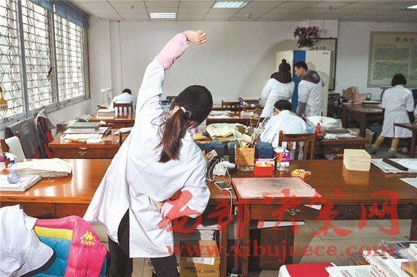 古籍修復(fù)工作現(xiàn)在仍是冷門行業(yè),修復(fù)師們頭上頂著“大國(guó)工匠”的光環(huán),背后卻有很多的艱辛。古書(shū)拆裝過(guò)程中會(huì)遇到大量陳年的灰塵、蟲(chóng)卵等,打噴嚏、犯鼻炎、過(guò)敏等現(xiàn)象時(shí)有發(fā)生;保持伏案姿勢(shì)一整天,幾乎所有的修復(fù)師都有頸椎和腰椎疾病。而古籍修復(fù)從業(yè)人員的待遇并不高,對(duì)年輕人缺乏吸引力。每年會(huì)有許多實(shí)習(xí)生來(lái)到中心實(shí)習(xí),但實(shí)習(xí)結(jié)束,不少學(xué)生就離開(kāi)這個(gè)行業(yè),能夠留下來(lái)的,寥寥無(wú)幾,更多人把它當(dāng)作副業(yè)或者興趣愛(ài)好。