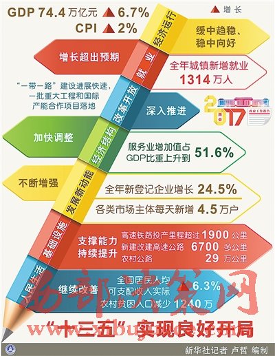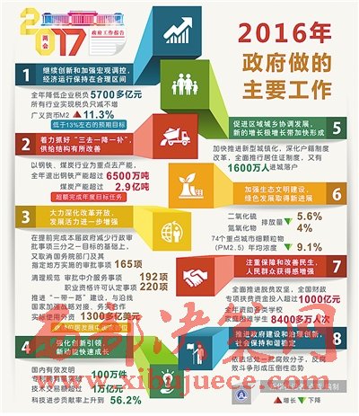 國(guó)務(wù)院總理李克強(qiáng)5日在作政府工作報(bào)告時(shí)說(shuō),過(guò)去一年,我國(guó)發(fā)展面臨國(guó)內(nèi)外諸多矛盾疊加、風(fēng)險(xiǎn)隱患交匯的嚴(yán)峻挑戰(zhàn)。在以習(xí)近平同志為核心的黨中央堅(jiān)強(qiáng)領(lǐng)導(dǎo)下,全國(guó)各族人民迎難而上,砥礪前行,推動(dòng)經(jīng)濟(jì)社會(huì)持續(xù)健康發(fā)展。黨的十八屆六中全會(huì)正式明確習(xí)近平總書(shū)記的核心地位,體現(xiàn)了黨和人民的根本利益,對(duì)保證黨和國(guó)家興旺發(fā)達(dá)、長(zhǎng)治久安,具有十分重大而深遠(yuǎn)的意義。各地區(qū)、各部門不斷增強(qiáng)政治意識(shí)、大局意識(shí)、核心意識(shí)、看齊意識(shí),推動(dòng)全面建成小康社會(huì)取得新的重要進(jìn)展,全面深化改革邁出重大步伐,全面依法治國(guó)深入實(shí)施,全面從嚴(yán)治黨縱深推進(jìn),全年經(jīng)濟(jì)社會(huì)發(fā)展主要目標(biāo)任務(wù)圓滿完成,“十三五”實(shí)現(xiàn)了良好開(kāi)局。