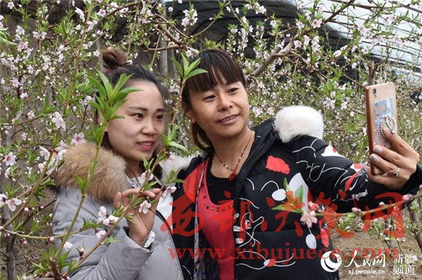 在新疆生產(chǎn)建設(shè)兵團(tuán)第五師八十六團(tuán)一溫室大棚里,桃花盛開,春意盎然,一游客帶著孩子正在觀賞桃花。目前,桃花迎來(lái)了盛花期,吸引了周邊游客前來(lái)賞花、拍照,感受春天的氣息。