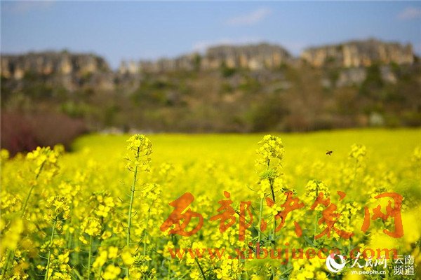 乃古石林千畝油菜花競相盛放,形成一片金色花海。