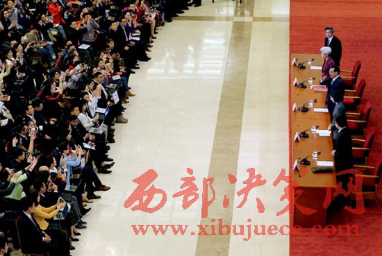 圖為3月15日,國務(wù)院總理李克強在北京人民大會堂與中外記者見面,并回答記者提問。