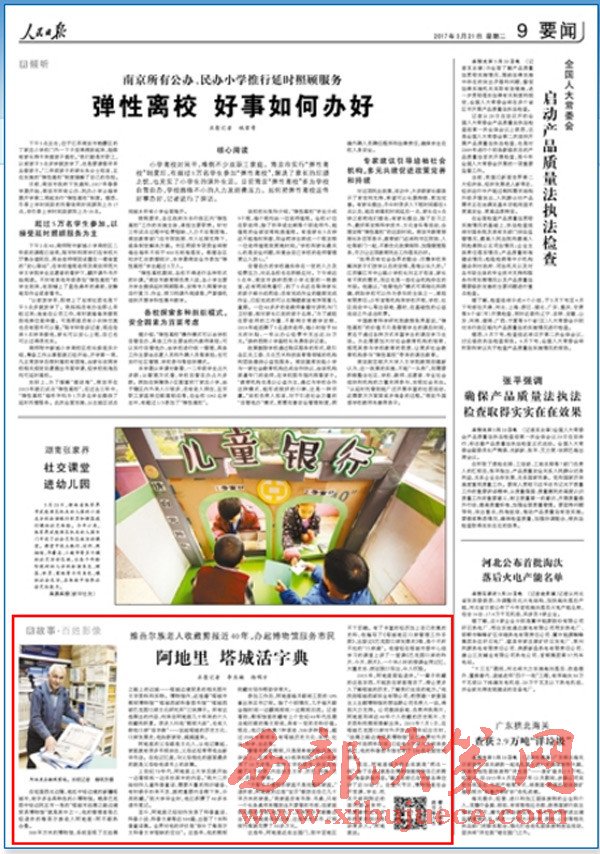 2015年,阿地里面臨退休。“一輩子收藏的這些東西,不能放在家里埋沒了,得讓更多人了解塔城的歷史,了解我們生活的地方。”他找到塔城西部實業(yè)有限公司,把想建一家愛國主義主題博物館的想法跟公司負責(zé)人一說,得到大力支持。公司提供場地、負責(zé)沖洗照片,阿地里則將近40年個人收藏的歷史照片、文史資料和剪報奉獻出來。2015年7月1日,在塔城巴克圖口岸對外開放30周年紀(jì)念日時,“絲綢之路邊境貿(mào)易博物館”正式免費對外開放。不到兩年時間,已經(jīng)有3萬多人次前來參觀過,他的科普圖書館也有了100多名固定的讀者。