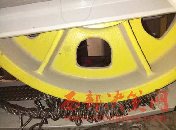 4月14日,西部大開(kāi)發(fā)工作人員來(lái)到凱躍歐洲城,見(jiàn)到凱躍物業(yè)的尹經(jīng)理,說(shuō)明來(lái)意后,尹經(jīng)理說(shuō),6號(hào)樓確實(shí)有五部電梯,其中有三部電梯在每月的電梯安檢時(shí)發(fā)現(xiàn)鋼絲繩有安全隱患,其中一部電梯鋼絲部分開(kāi)叉,已經(jīng)絞到滑輪下面,如果繼續(xù)使用,會(huì)有安全問(wèn)題。所以物業(yè)公司3月份就找到寶雞市特種設(shè)備檢驗(yàn)所(以下簡(jiǎn)稱特檢所),要求現(xiàn)場(chǎng)檢查電梯到底是否能安全,能否繼續(xù)使用。