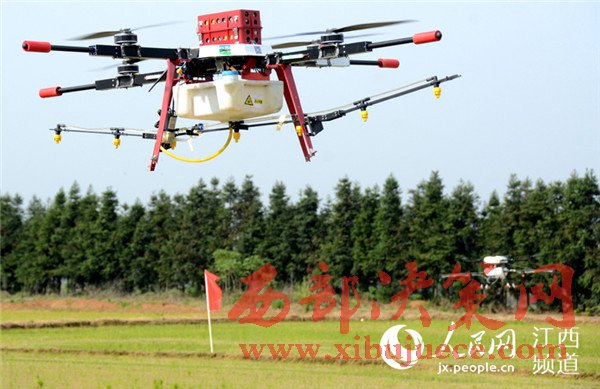 4月18日,江西省奉新縣宋埠鎮(zhèn)橋頭村奉新縣建華農(nóng)機(jī)合作社的稻田上空,數(shù)架無人機(jī)正在“嗡嗡”作業(yè),農(nóng)技員正在展示植保無人機(jī)噴灑農(nóng)藥的功能。