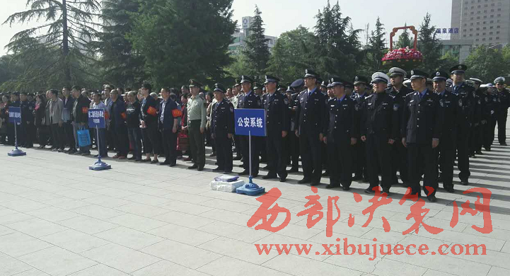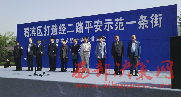 西部決策網(wǎng)-西部大開發(fā)訊(帥華鋒 杜杰)5月6日上午,渭濱區(qū)在炎帝園廣場隆重舉行打造“經(jīng)二路平安示范一條街” 夏季攻堅(jiān)行動(dòng)推進(jìn)會(huì),市委政法委及區(qū)委、區(qū)人大、區(qū)政府、區(qū)政協(xié)相關(guān)領(lǐng)導(dǎo)出席現(xiàn)場,公安、執(zhí)法、區(qū)級(jí)部門、平安單位、社區(qū)志愿者組成五個(gè)方陣共300余人參加會(huì)議。