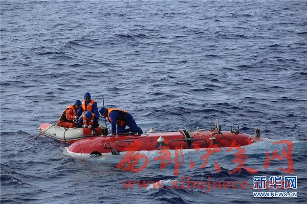 5月23日,“蛟龍”號完成下潛準備回到“向陽紅09”科學考察船上。