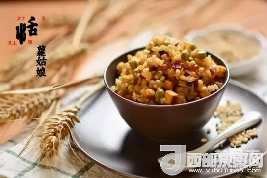 主料:南瓜200克;大米200克;胡蘿卜200克;醬肉100克。