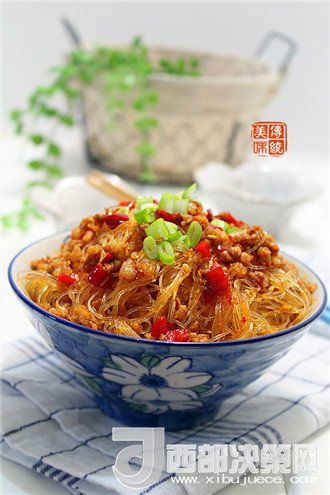 細(xì)碎酥香的肉末粘在粉絲上,尤如螞蟻爬在樹上,所以得名“螞蟻上樹”,名字很形象也很有趣。這道菜粉絲油亮誘人、口感柔軟滑嫩、肉沫酥香、風(fēng)味別致,是一道非常有名的家常菜。做法也簡單,主料只有肉末和粉絲,很適合居家制作。