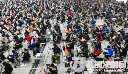 資料圖:一次模擬考試中,老師穿行在15000張肖像畫中,為畫作打分。(記者 韋亮 攝)