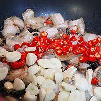 6. 將蒜片、紅辣椒、豆豉放進(jìn)鍋中,煸炒出香味。