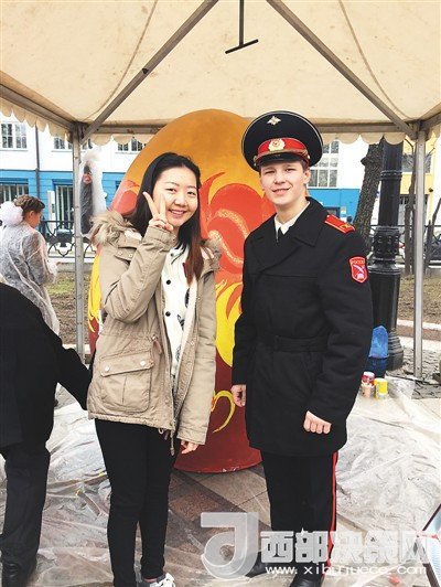 在俄羅斯的節(jié)日慶典活動(dòng)中,姜若晨(左一)與當(dāng)?shù)剀娦W(xué)生的合影。在她看來,學(xué)子與外國朋友的交往過程中要注重自身形象,傳遞中國微笑。