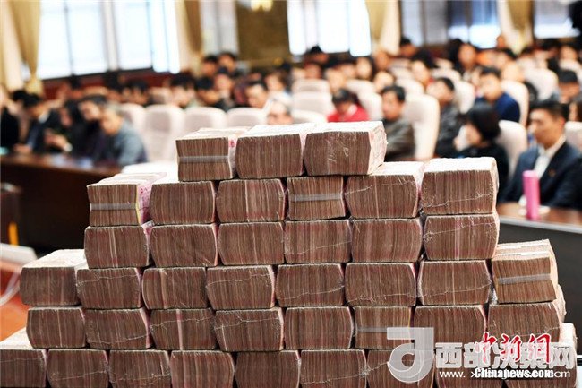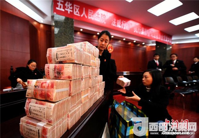 1月23日,發(fā)放現(xiàn)場(chǎng)法院工作人員在整理堆放的現(xiàn)金。當(dāng)日,在2018年春節(jié)臨近之際,昆明市五華法院“法威行動(dòng)”執(zhí)行案款暨司法救助金集中發(fā)放在五華法院進(jìn)行。共對(duì)107件涉民生、涉金融案件發(fā)放執(zhí)行案款約5000萬(wàn)元,同時(shí)對(duì)13起執(zhí)行案件中的14名特困人員發(fā)放司法救助金346000元。此次集中發(fā)放案款暨司法救助金大會(huì),旨在彰顯司法的權(quán)威和司法的人文關(guān)懷,確保申請(qǐng)執(zhí)行人和特困人員的合法權(quán)益得到及時(shí)兌現(xiàn),讓民眾過上一個(gè)歡樂祥和的新春佳節(jié)。記者李進(jìn)紅攝