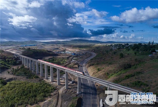 2017年5月12日,列車從肯尼亞蒙內(nèi)鐵路沿線的馬澤拉斯鐵路大橋上駛過。蒙內(nèi)鐵路連接肯尼亞首都內(nèi)羅畢和東非第一大港蒙巴薩,全長約480公里,是一條采用中國標(biāo)準(zhǔn)、中國技術(shù)、中國裝備建造的現(xiàn)代化鐵路。記者陳誠攝