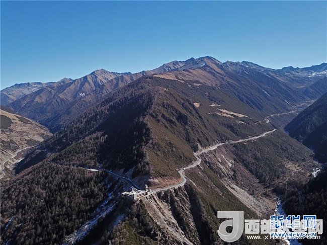 在四川省阿壩藏族羌族自治州小金縣,汽車(chē)行駛在山腰的公路上(1月24日攝)。記者 才揚(yáng) 攝