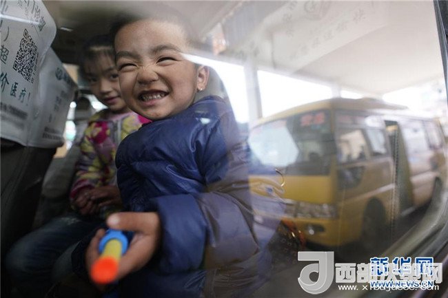 小朋友在福建省永安市小陶鎮(zhèn)乘坐村鎮(zhèn)公交(1月26日攝)。記者 邢廣利 攝