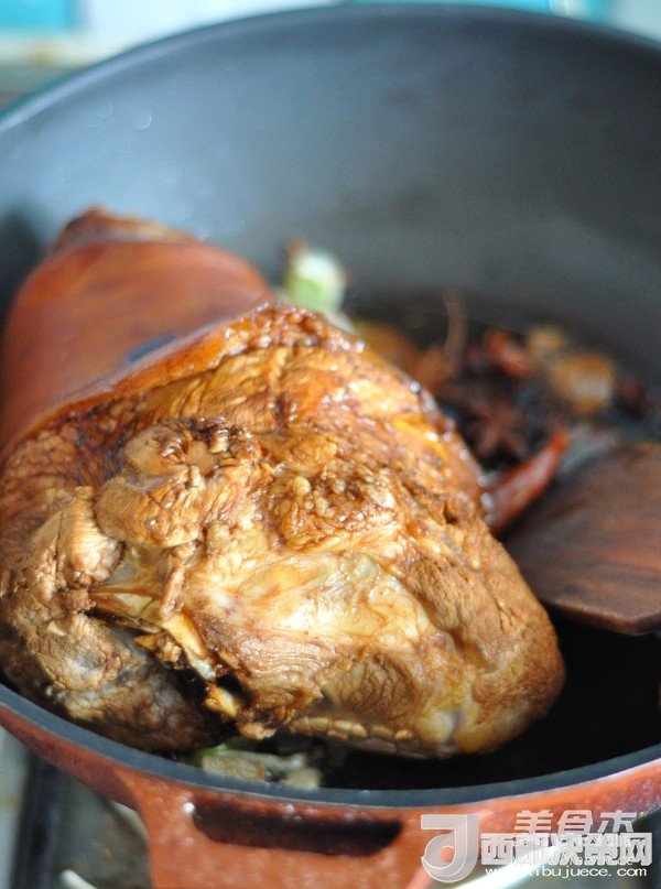 3.如果不急著吃,煮好的肘子可以在汁水里多浸泡一些時(shí)間,便于入味。最后的芡汁不可以增加色澤與賣(mài)相,還可以防止沒(méi)時(shí)間入味導(dǎo)致肘子內(nèi)部味道不明顯,不宜缺少。