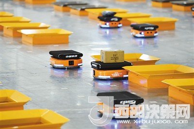 如今,智能機器人在快遞分揀領域的應用大幅提升了快遞效率。圖為中國郵政速遞物流華中(武漢)陸運中心啟用機器人分揀郵件。