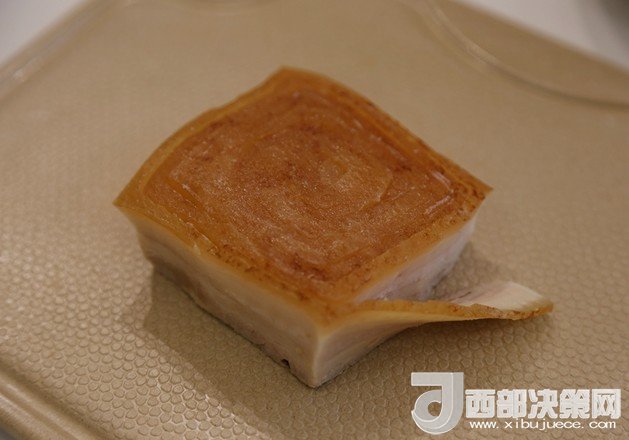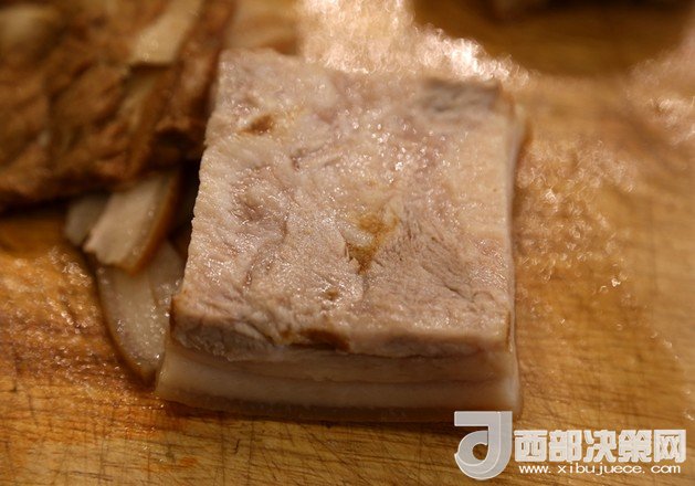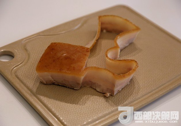 5.將肉撈出后放入冷水中過涼,然后放到平盤里上面放重物壓平整,再休整一下,然后放入冰箱冷藏凍硬,或者冷凍短時間變硬。