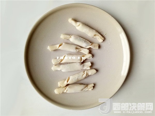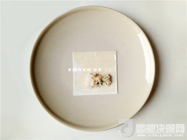 5.如圖所示,抄手皮卷起來(lái),封口處可用適量清水或蛋清涂抹,便于粘連;