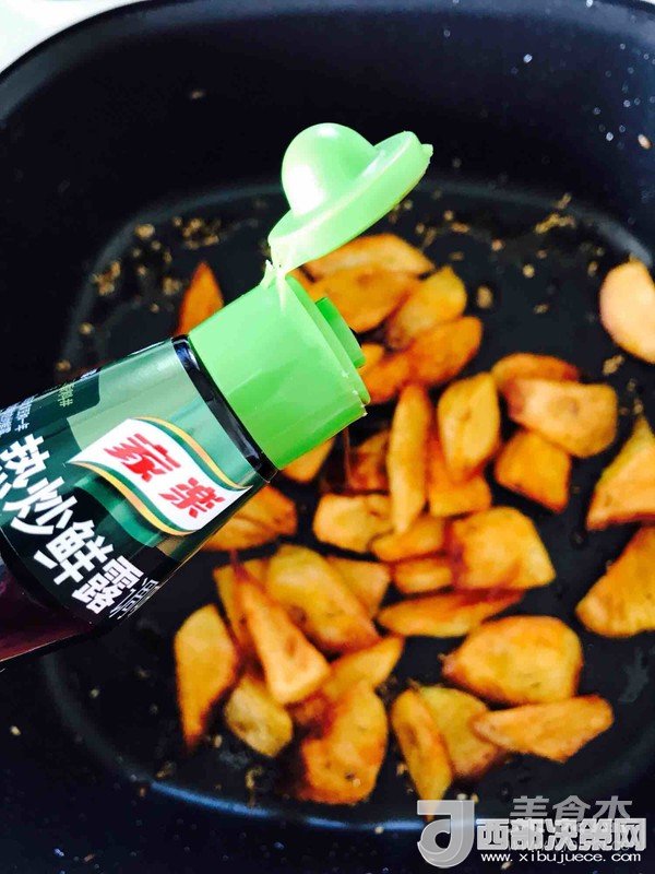 前期煎制要保持小火,土豆才會(huì)金黃,火大就黑了,火大就糊了,火大外面焦了里面還不熟,切記切記!還要要記得每面都沾上油,每面都要煎