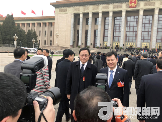 ?。▓D為全國人大代表張近東在十三屆全國人大一次會議上接受記者采訪)