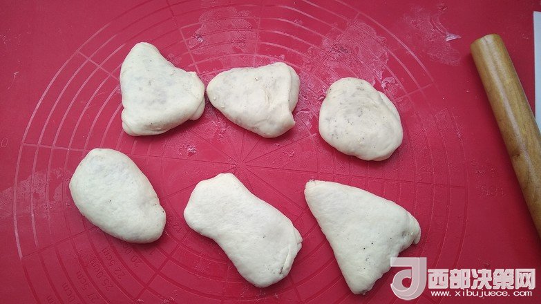 4.面粉200克+酵母粉2克+泡打粉2克+白糖2克溫水+110克揉成面團(tuán)餳30分鐘