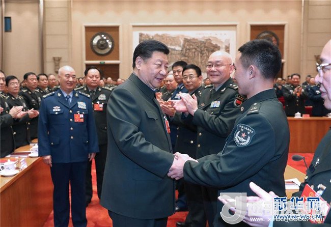 當(dāng)習(xí)近平走進(jìn)會場時,全場響起熱烈掌聲。習(xí)近平同大家親切握手,表示來到解放軍和武警部隊(duì)代表團(tuán),同各位代表共商國是,感到很高興。