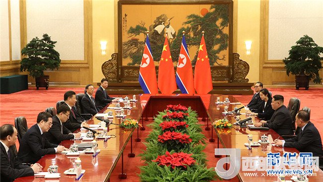 在會(huì)談中,習(xí)近平代表中共中央對(duì)金正恩首次訪問(wèn)中國(guó)表示熱烈歡迎。習(xí)近平表示,你在中共十九大后電賀我再次當(dāng)選中共中央總書記、就任黨中央軍委主席,前些天又第一時(shí)間電賀我再次當(dāng)選國(guó)家主席、國(guó)家中央軍委主席,我對(duì)此表示感謝。此次來(lái)華訪問(wèn),時(shí)機(jī)特殊、意義重大,充分體現(xiàn)了委員長(zhǎng)同志和朝黨中央對(duì)中朝兩黨兩國(guó)關(guān)系的高度重視,我們對(duì)此高度評(píng)價(jià)。