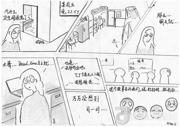 李雍告訴記者,家居與工業(yè)設(shè)計(jì)學(xué)院的學(xué)生都有一定美術(shù)功底,畫檢討剛好能讓學(xué)生在反省的同時鍛煉自己的專業(yè)技能,加上漫畫的表現(xiàn)形式輕松活潑,更符合“95后”的表達(dá)風(fēng)格。“學(xué)生們的漫畫體檢討融合了他們的創(chuàng)作情感,文字無法完整表達(dá)的心理活動,都可以通過這種圖文并茂的形式生動地呈現(xiàn)出來,而他們會把這種情感潛移默化嫁接到檢討的屬性里去,從而提升檢討教育的實(shí)效性。”