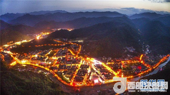 夜幕下的新青川縣城,燈火輝煌(4月25日無人機(jī)拍攝)。新華社記者陶明攝